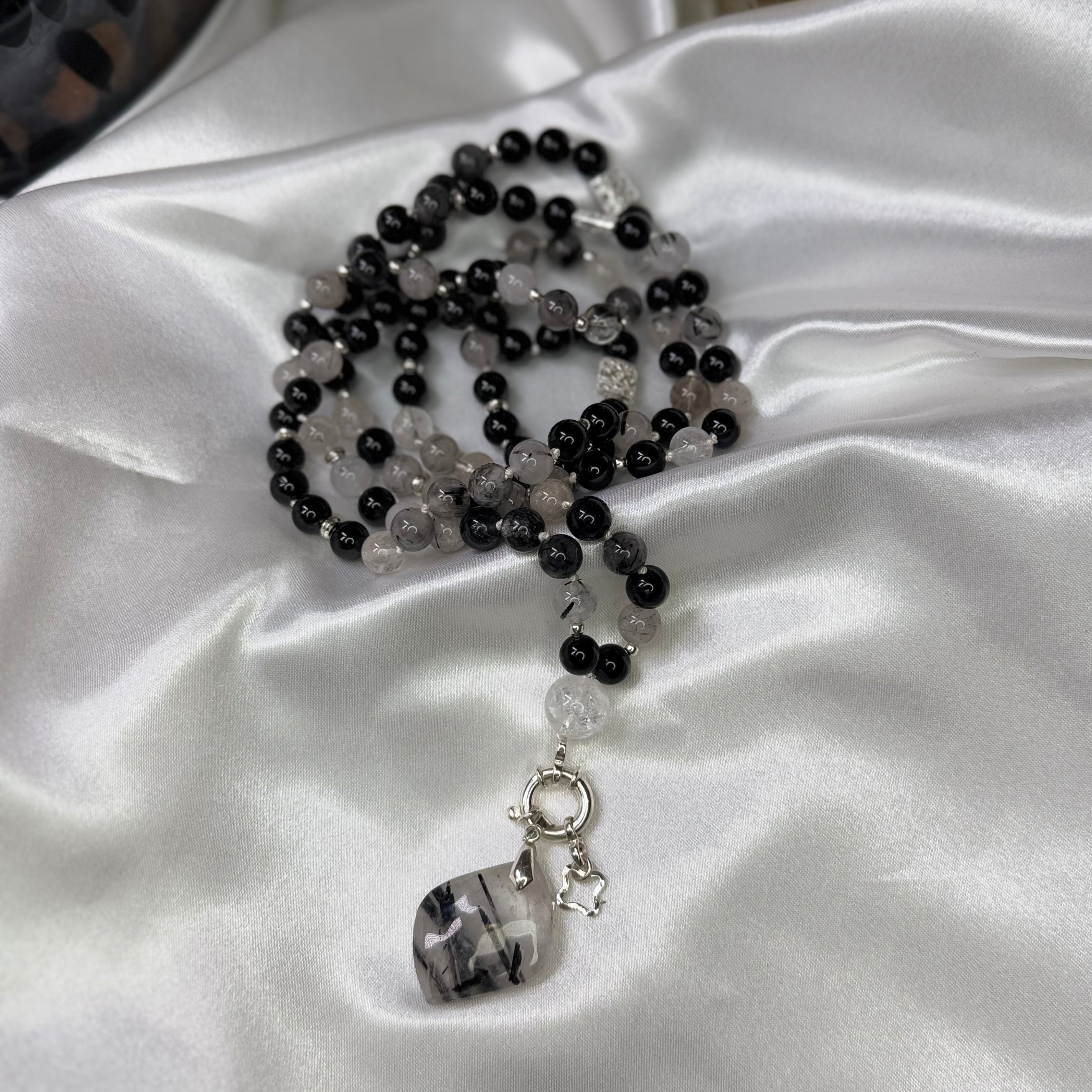 Pendant la création, je tisse votre énergie dans chaque perle. Pour cela, je récite le mantra ou l’intention que vous m’avez confiée à chaque fois que je fais un nœud entre les perles. Ces nœuds ne sont pas de simples attaches : ils sont des points d’ancrage pour votre intention, des rappels physiques de la puissance de votre désir ou de votre objectif.
