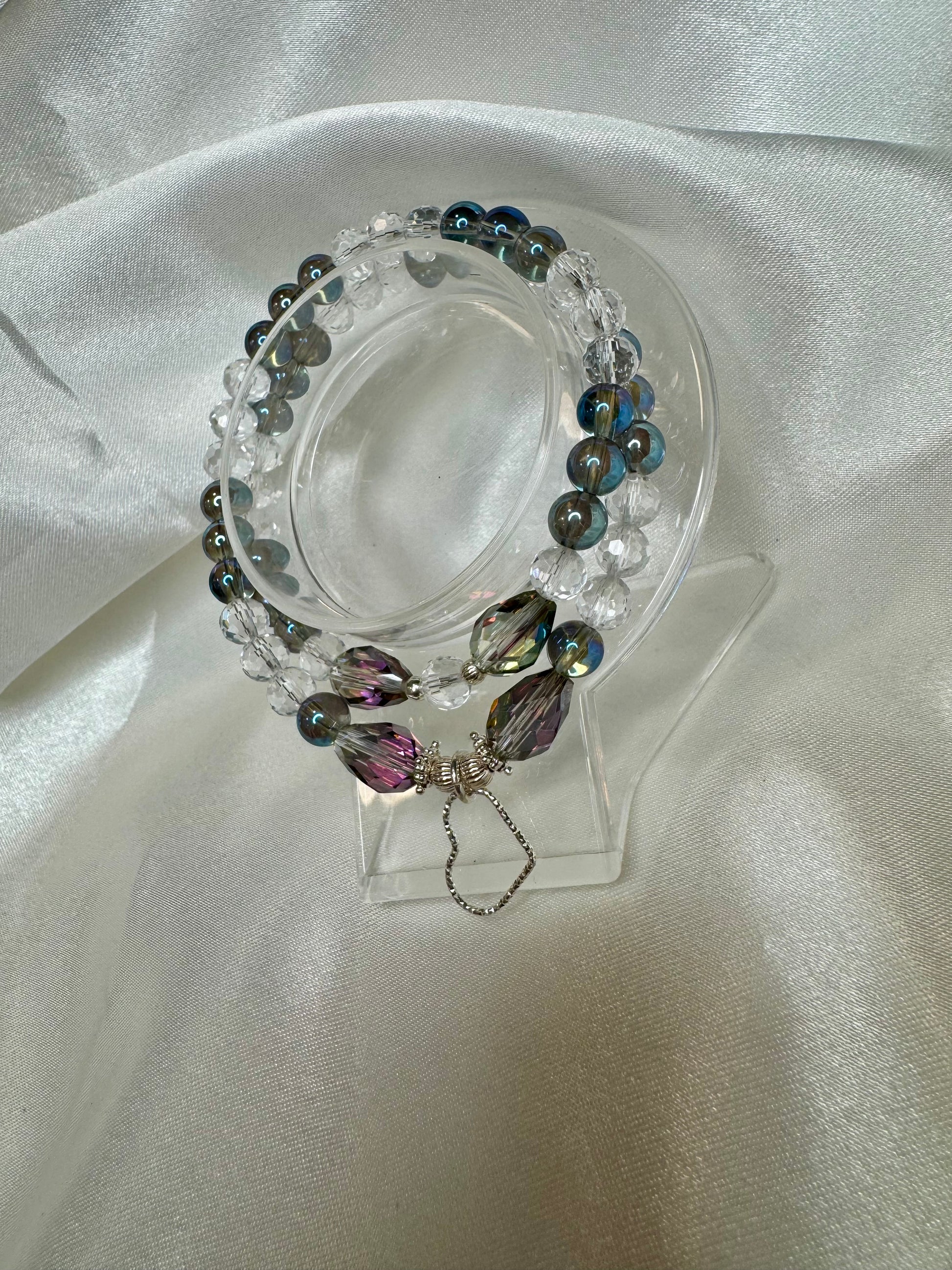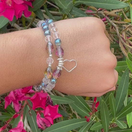 Bracelet Aura Éclatante – Quartz Aura, Cristal de Roche & Perle de Verre