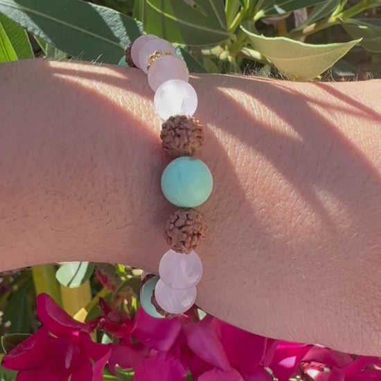 Bracelet Équilibre du Cœur – Chrysoprase, Quartz Rose & Rudraksha