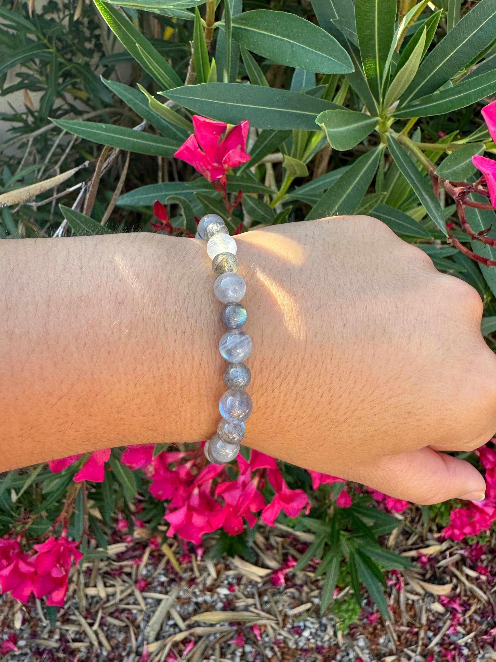 Ce bracelet en labradorite est un véritable bouclier énergétique, idéal pour se protéger des énergies négatives et des influences extérieures. Pierre des thérapeutes et des hypersensibles, elle absorbe les ondes indésirables tout en renforçant l’intuition et la clarté mentale. Parfait pour développer vos capacités intuitives et préserver votre équilibre émotionnel au quotidien.