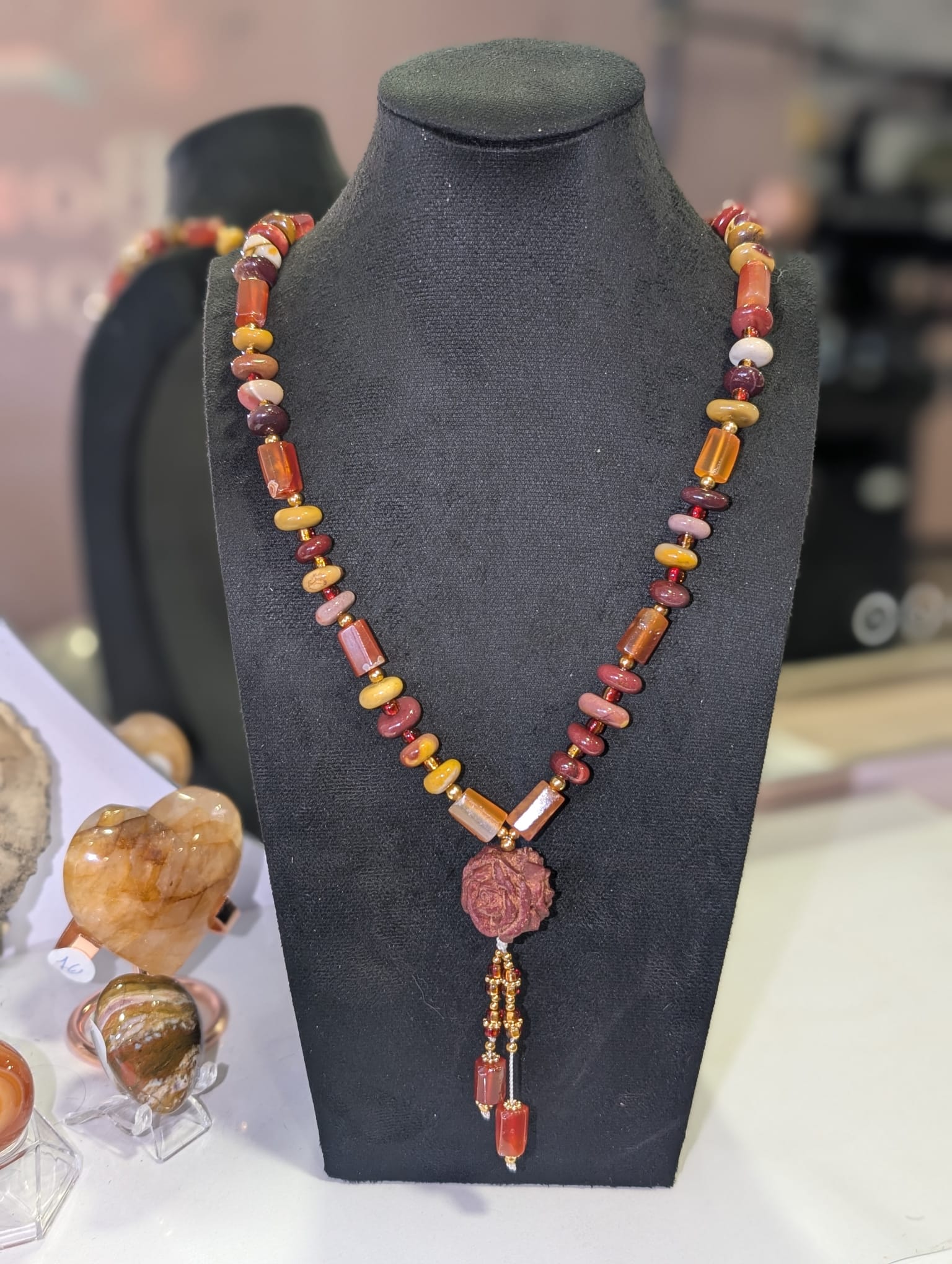 Ce collier est une rencontre entre la chaleur du feu et la sagesse de la terre.