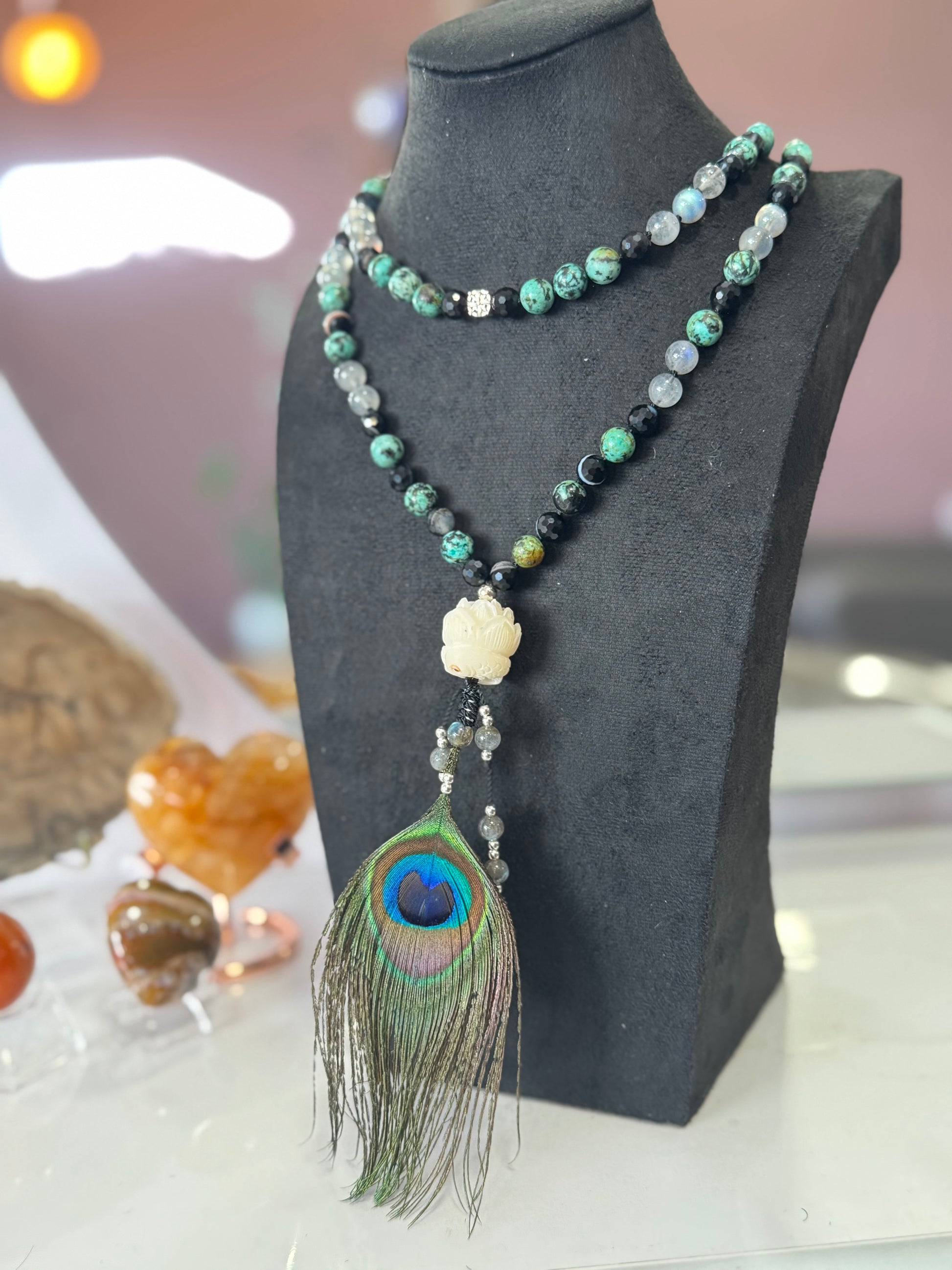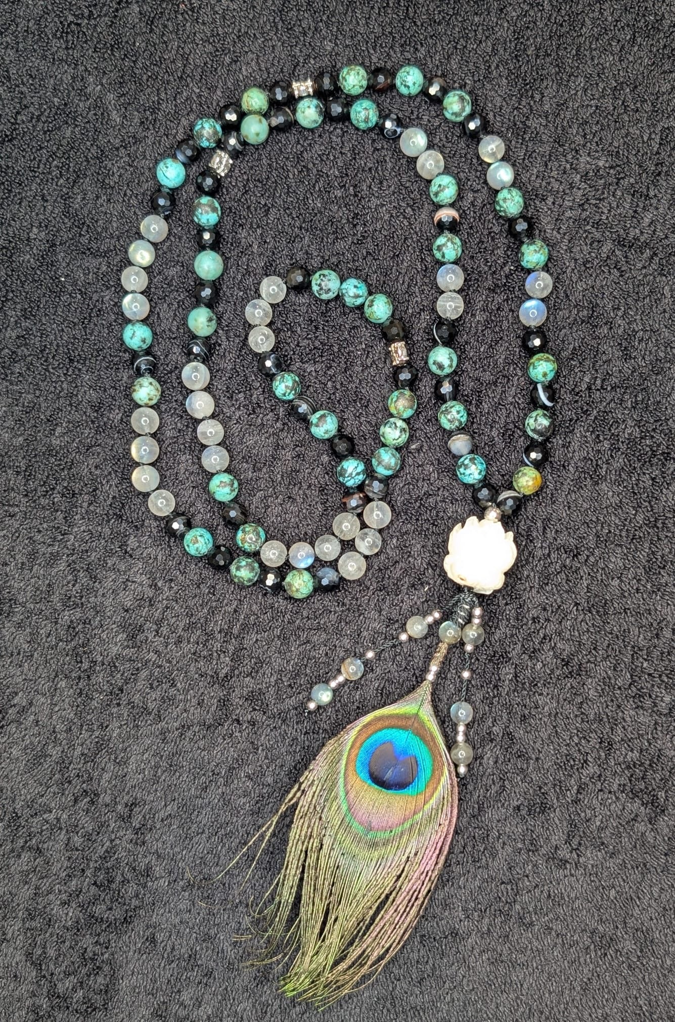 Porté autour du cou ou du poignet, le mala agit comme une protection énergétique et une source constante de vibrations positives.