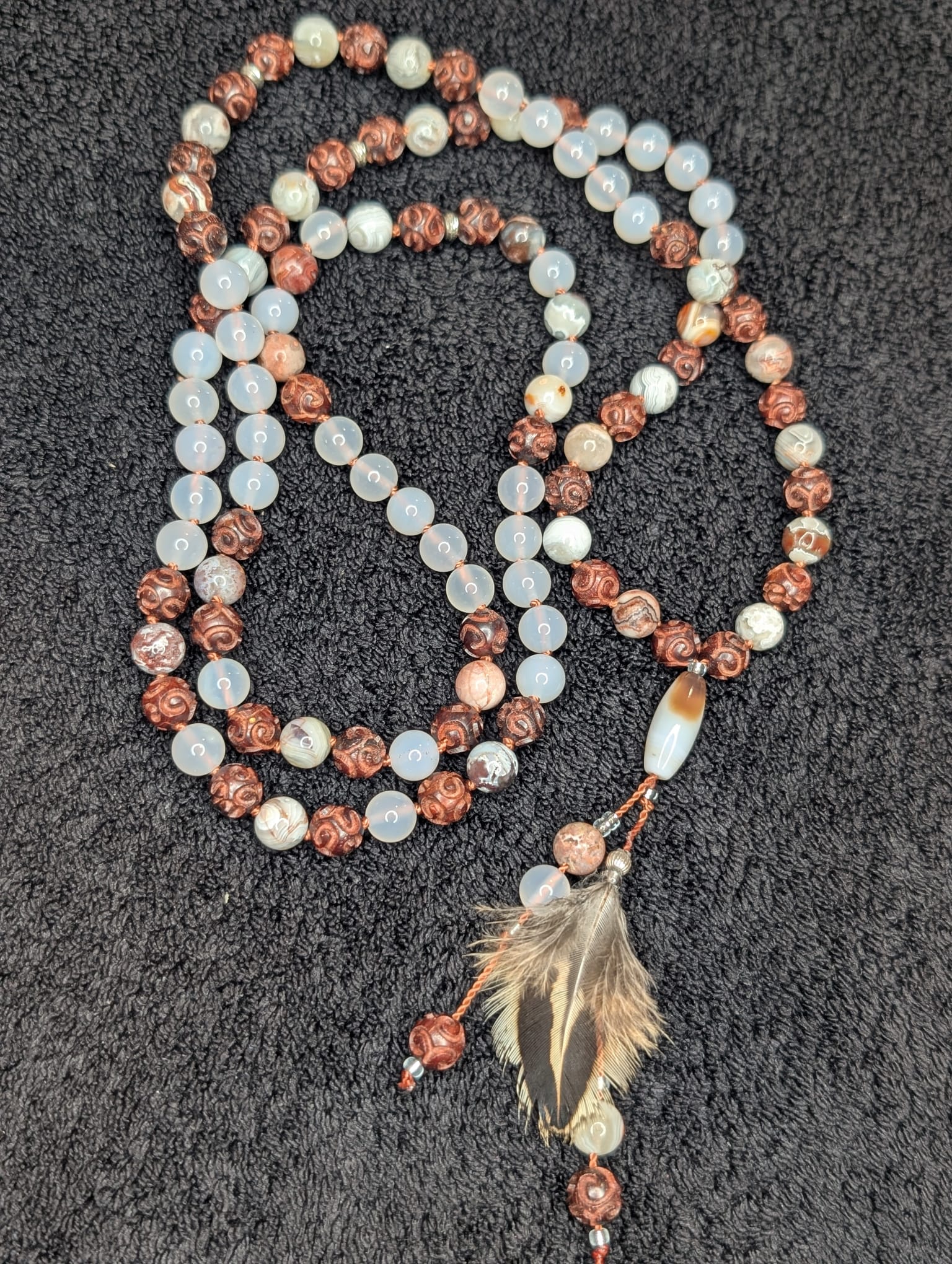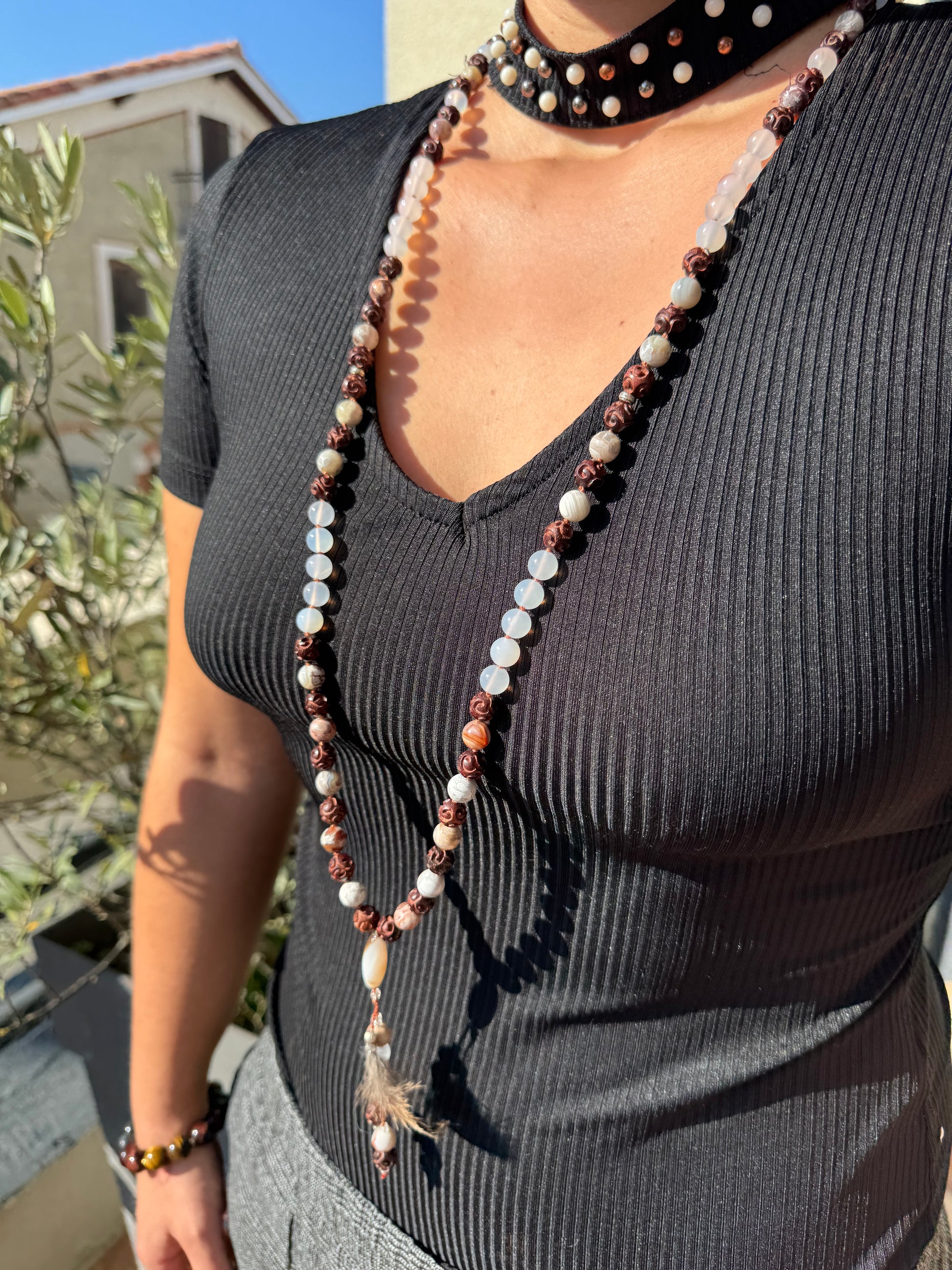 Porté autour du cou ou du poignet, le mala agit comme une protection énergétique et une source constante de vibrations positives.