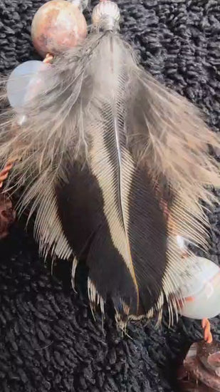 Plume : symbole de légèreté, d’élévation et de guidance spirituelle. Elle rappelle la présence des anges, esprits ou animaux totems, et invite à respirer avec l’âme et à suivre le vent de la vie avec confiance.